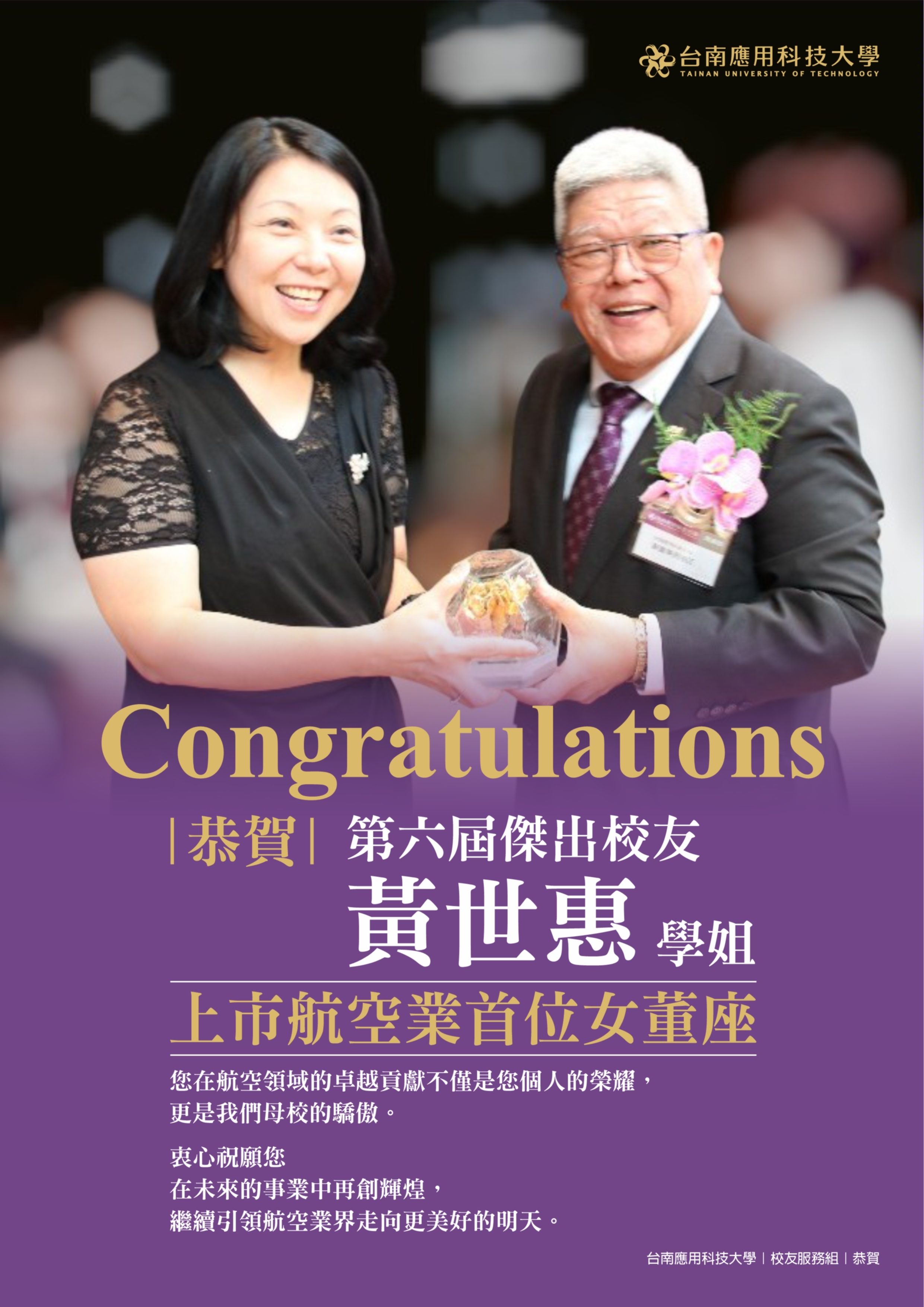 【恭賀】服設系傑出校友黃世惠學姐接任上市航空業首位女董座
